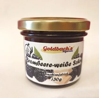 Fruchtaufstrich aus 69,8% Brombeere, 7% weiße Kuvertüre, Bio-Gelierzucker 2:1